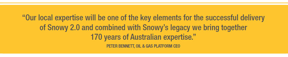 Oil & Gas platform CEO, Peter Bennett said: “We are extremely pleased with the award of this iconic project by Snowy Hydro Limited. Currently celebrating its 100th year of operation, Clough is an Australian-founded engineering and construction company with a proven history of delivering world-class projects and critical infrastructure in Australia and overseas. Our local expertise will be one of the key elements for the successful delivery of Snowy 2.0 and combined with Snowy’s legacy we bring together 170 years of Australian expertise”.